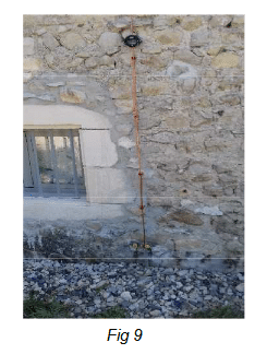 Réalisation d’un conducteur de descente en cuivre (si PTS ou PDA, avec une longueur maximale de 20 m Fig 9), ou de deux, dans les autres cas