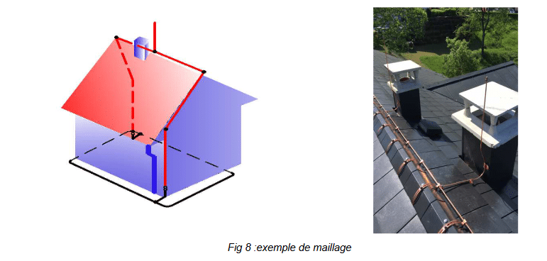 Réalisation d’une liaison équipotentielle, de préférence enterrée, entre la(es) prises(s) de terre du paratonnerre et la prise de terre de l’installation électrique (Fig 11)