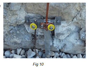 Création au pied de chaque descente d’une prise de terre constituée au choix de 2 électrodes horizontales de 6 mètres de longueur ou de 2 électrodes verticales de profondeur 3 mètres espacées de 3 mètres (Fig 10)