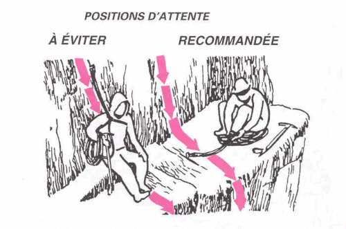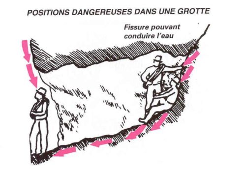 Pour les mêmes raisons, il est fallacieux de chercher à s’abriter dans une anfractuosité ou une petite grotte sans précaution, car une faille verticale peut y aboutir .En s’appuyant au fond, on risque d’être traversé par un